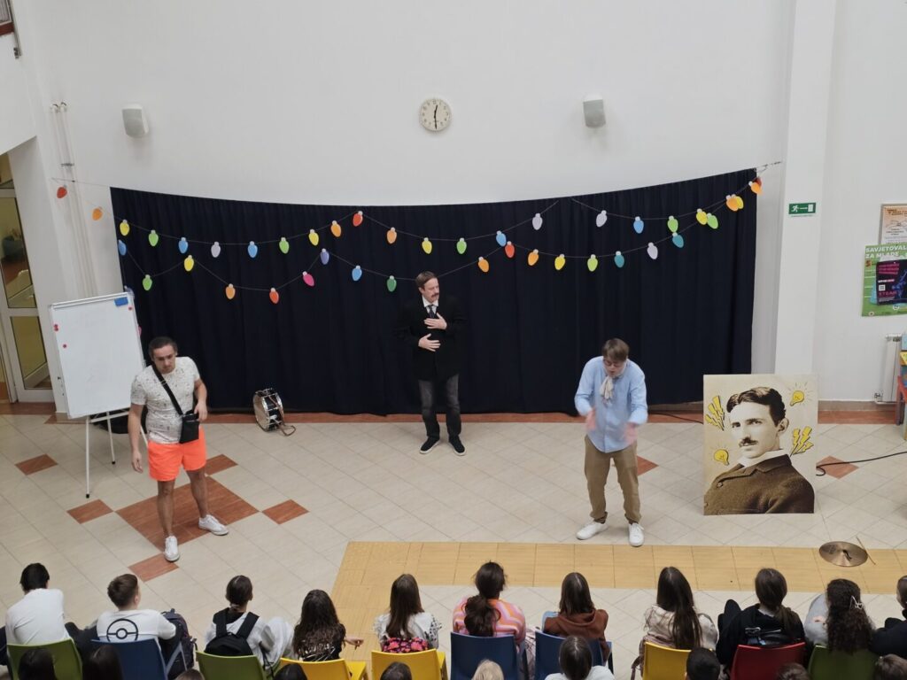 Predstavu su gledali učenici viših razreda, a kroz zabavan i interaktivni kazališni prikaz imali su priliku upoznati Teslinu znatiželju, upornost i ideje koje su zauvijek promijenile svijet.
