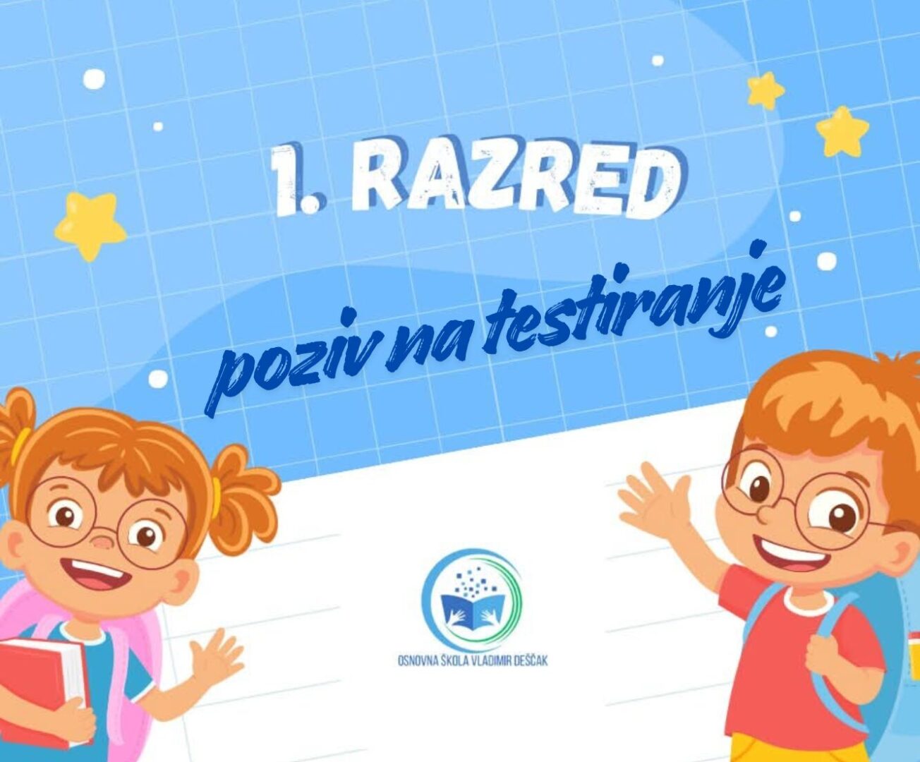 Na Vaše mail adrese (koje ste unijeli u sustav eUpisi) poslane su pozivnice za testiranje za 1. razred. Molimo Vas da potvrdite odgovara li vam ponuđeni termin kako bismo mogli organizirati nove termine ako će biti potrebe.