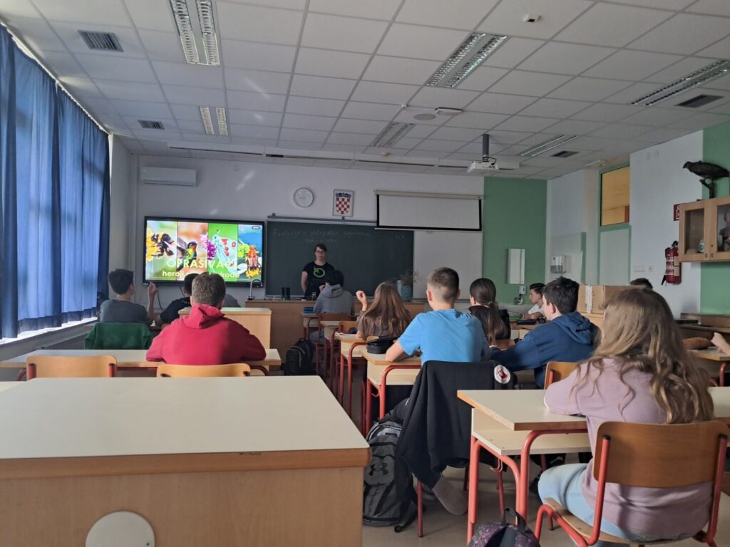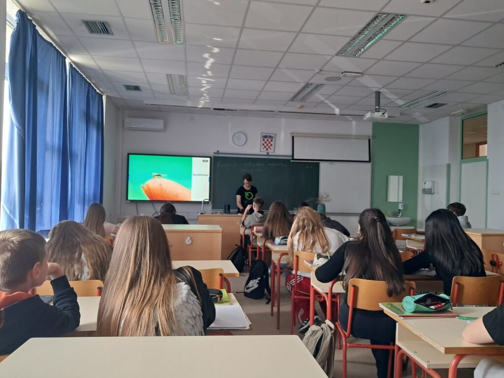 Viša stručna savjetnica Maja Pintar iz Javne ustanove Zeleni prsten Zagrebačke županije održala je u ponedjeljak, 13. travnja 2026. godine, predavanje pod nazivom „Oprašivači“ za učenike 7. razreda. Na kraju predavanja učenici su naučili kako izraditi hotel za kukce.